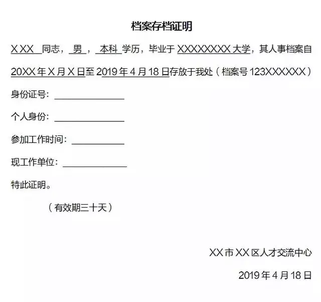 档案存档证明