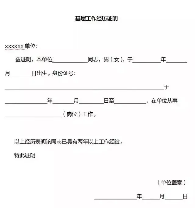 一般岗位如果要求具有两年、三年、五年等有基层工作经历的岗位需要开具相关证明。