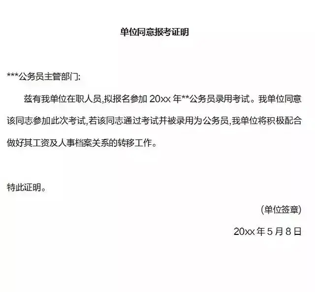 单位同意报考证明