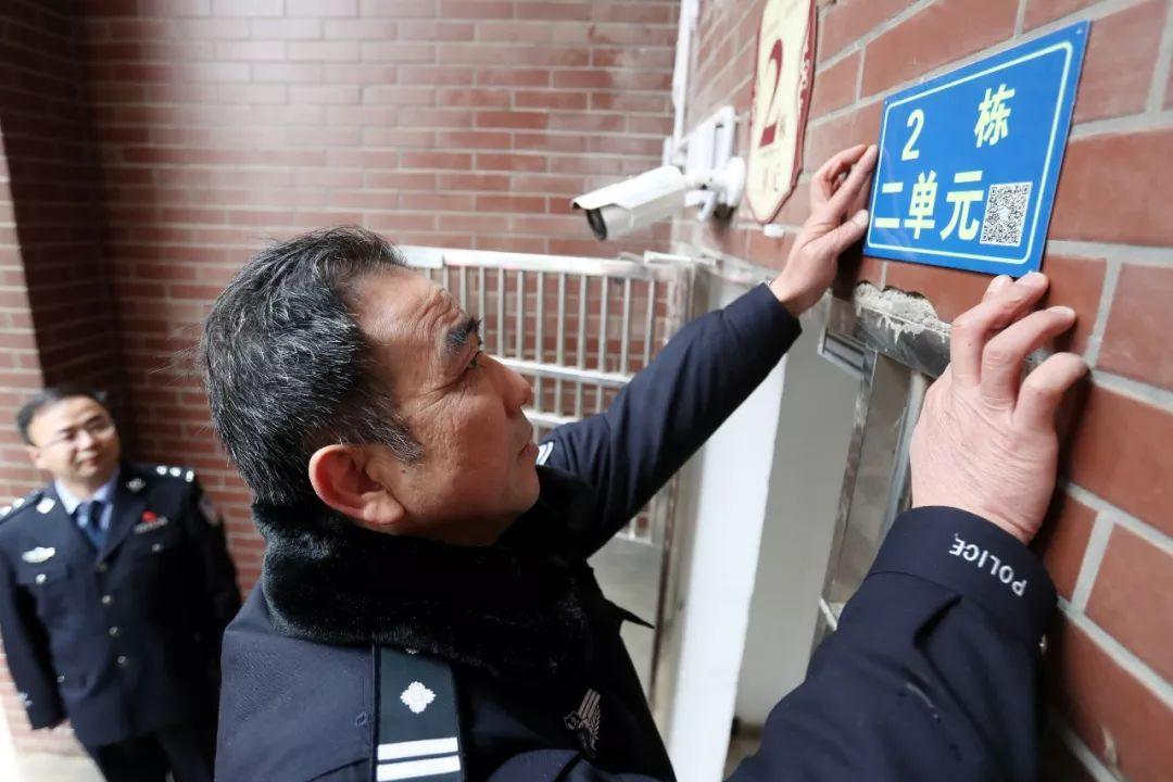 民警正在安装智慧二维码门楼牌 通讯员应后威 摄