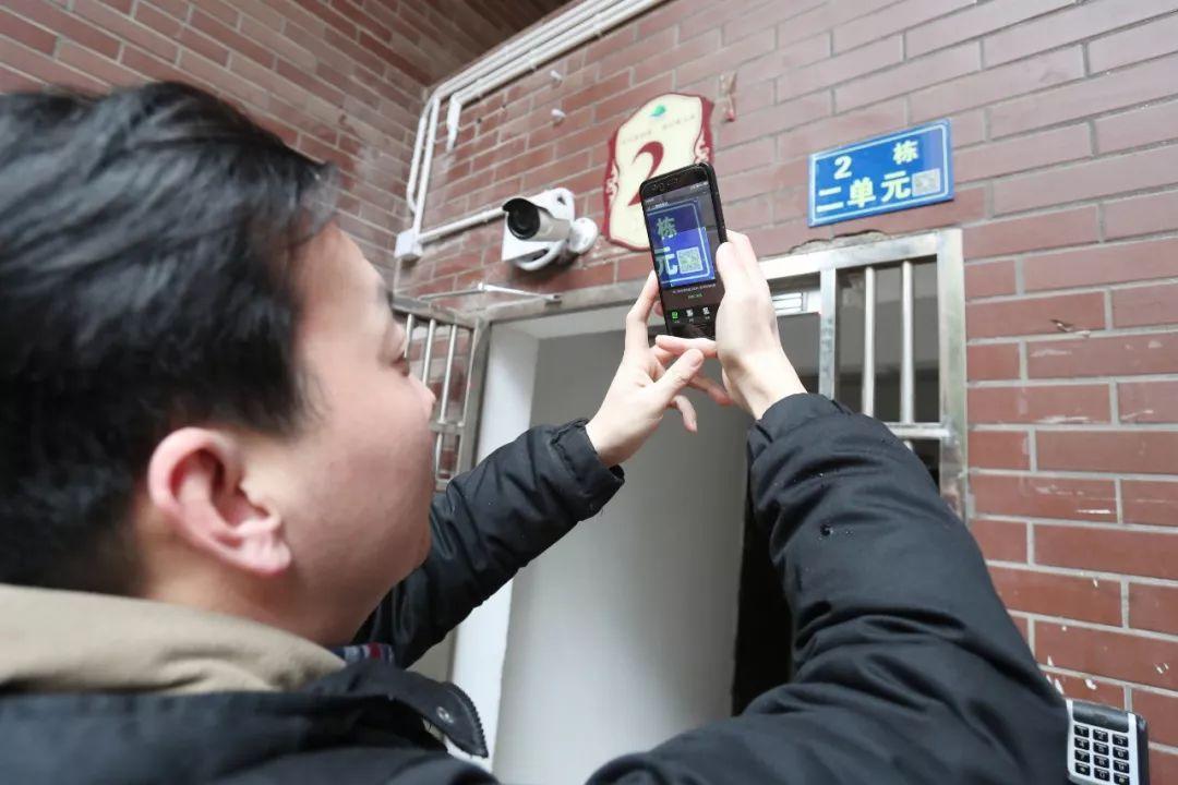 居民正在扫描智慧二维码门楼牌上的二维码 通讯员应后威 摄