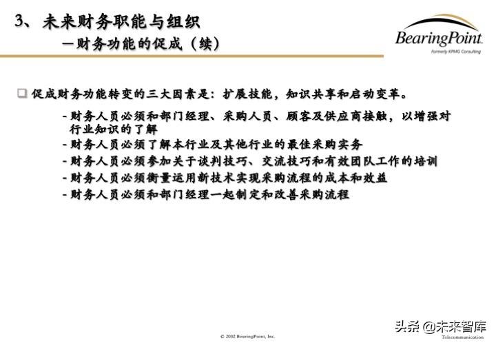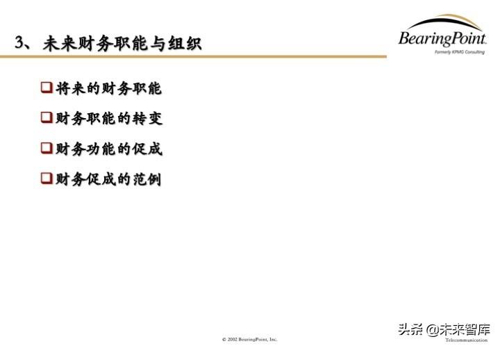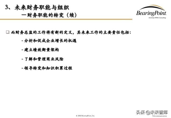 3、未来财务职能与组织:将来的财务职能,财务职能的转变,财务功能的促成,财务促成的范例;