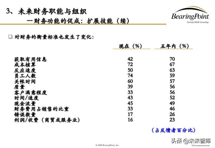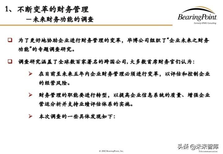1、不断变革的财务管理:企业变革的动力因素,财务管理的总体发展,未来财务功能的调查;