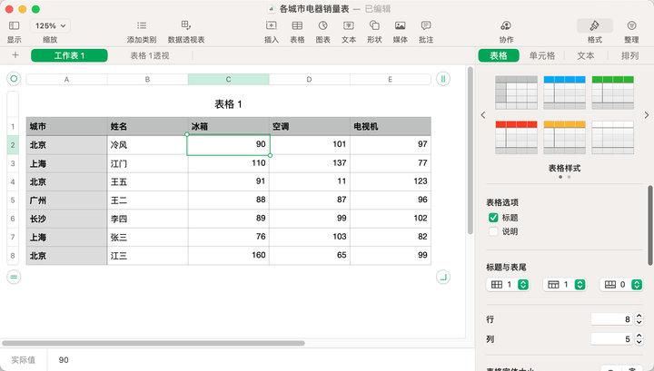 以数据透视表课程中经典的的《各城市电器销量表》为例,它比较符合日常办公的情况,日常输入一大段数据之后,往往要进行整理分类,甚至单独选择某些数据。