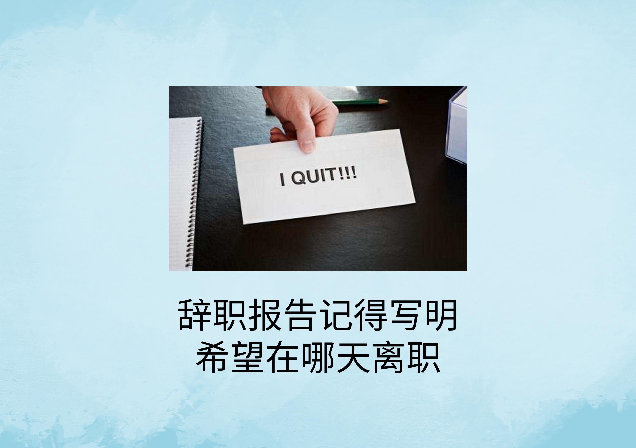 所以员工一旦决定要辞职了,必须在辞职报告中写明日期,然后到时间就走,不要犹犹豫豫,磨磨叽叽。