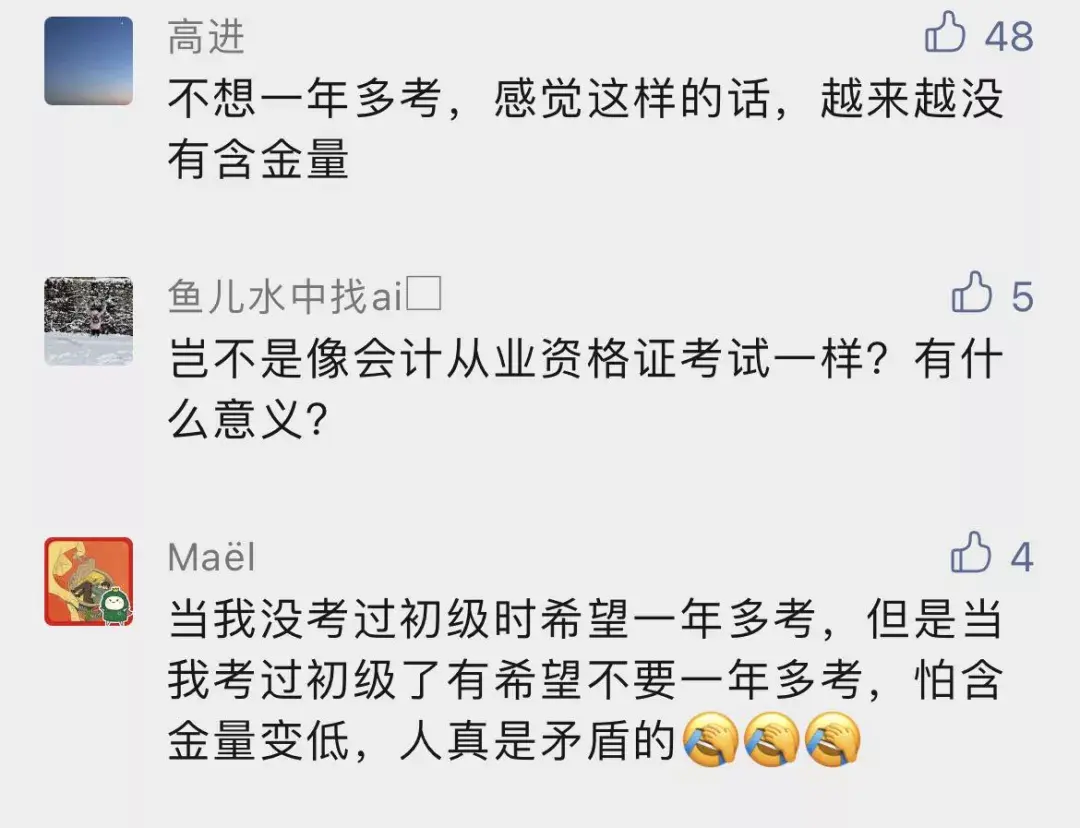 当然,也有同学对此存在质疑:一年多考对于考过的人来说公平吗?一年考2次,含金量会不会就低了。