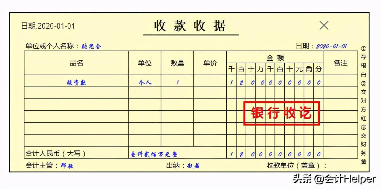 2020年01月01日,北京全建建筑工程有限公司接受股东投资款,基本户存入2000万元。其中,股东张思全转入1200万,股东李建勤转入800万。