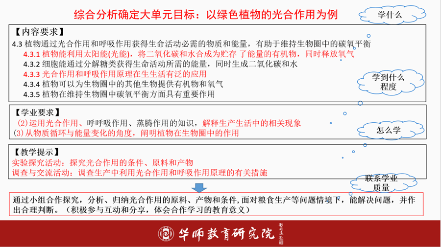 以初中生物为例——综合分析确定大单元目标:以绿色植物的光合作用为例。