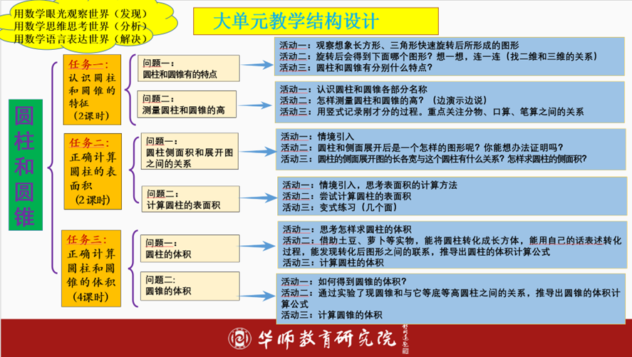 内容剖析是引领教学评一致性的灵魂,没有目标牵引就无法达到教学评的一致。而目标来自于对课标的分解,对教材的整合,有了教材后,才可以达到单元目录和连接、单元内容结构、例题整合、例题分析等问题构建。