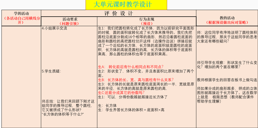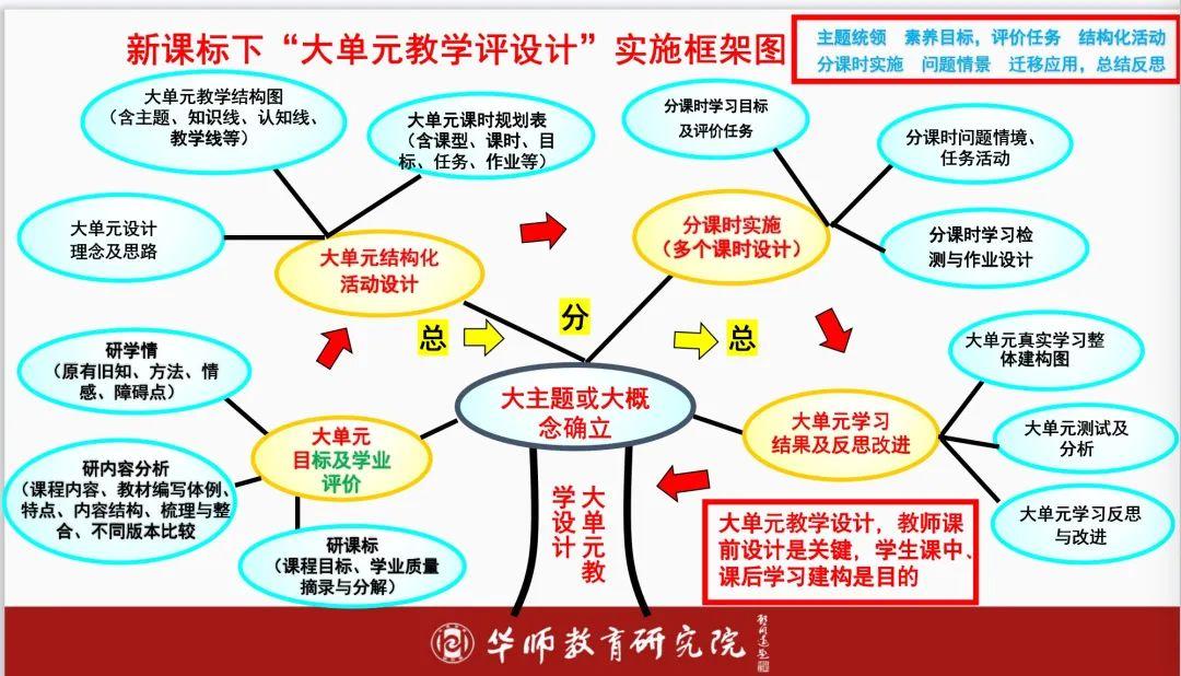 基于新课标大单元教学设计一体化,教师课前设计是关键,学生课中、课后学习建构是目的,和基于教学评一体化的目标是一贯的。