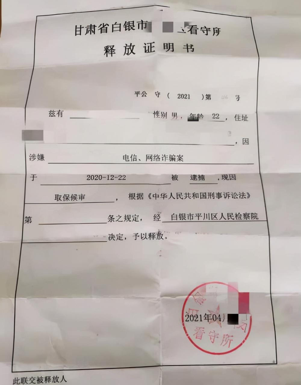 甘肃省白银市平川区检察院接受了辩护人的意见,同意变更羁押方式为取保候审,2021年4月13日,甘肃省白银市平川区看守所下发释放证明书(平公守(2021)第58号),被告人张某某被释放。