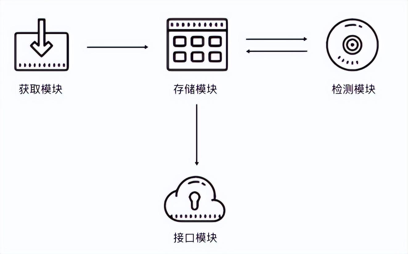 图中所示的代理池分为 4 个模块:存储模块、获取模块、检测模块和接口模块: