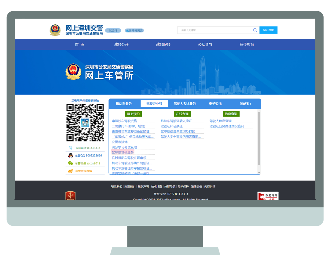 登录深圳交警网上车管所(szjj.sz.gov.cn/CGZL),选择“驾驶证其他业务”,填写相关资料预约办事地点。
