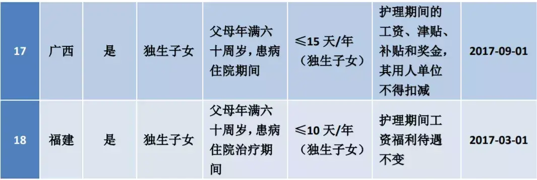 全国陪护假一览表