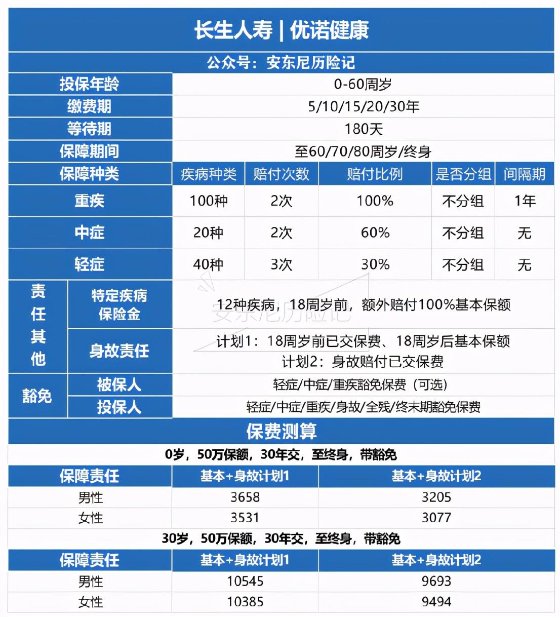 长生优诺健康在少儿的费率上是比昆仑健康保普惠多倍版还要低一些。