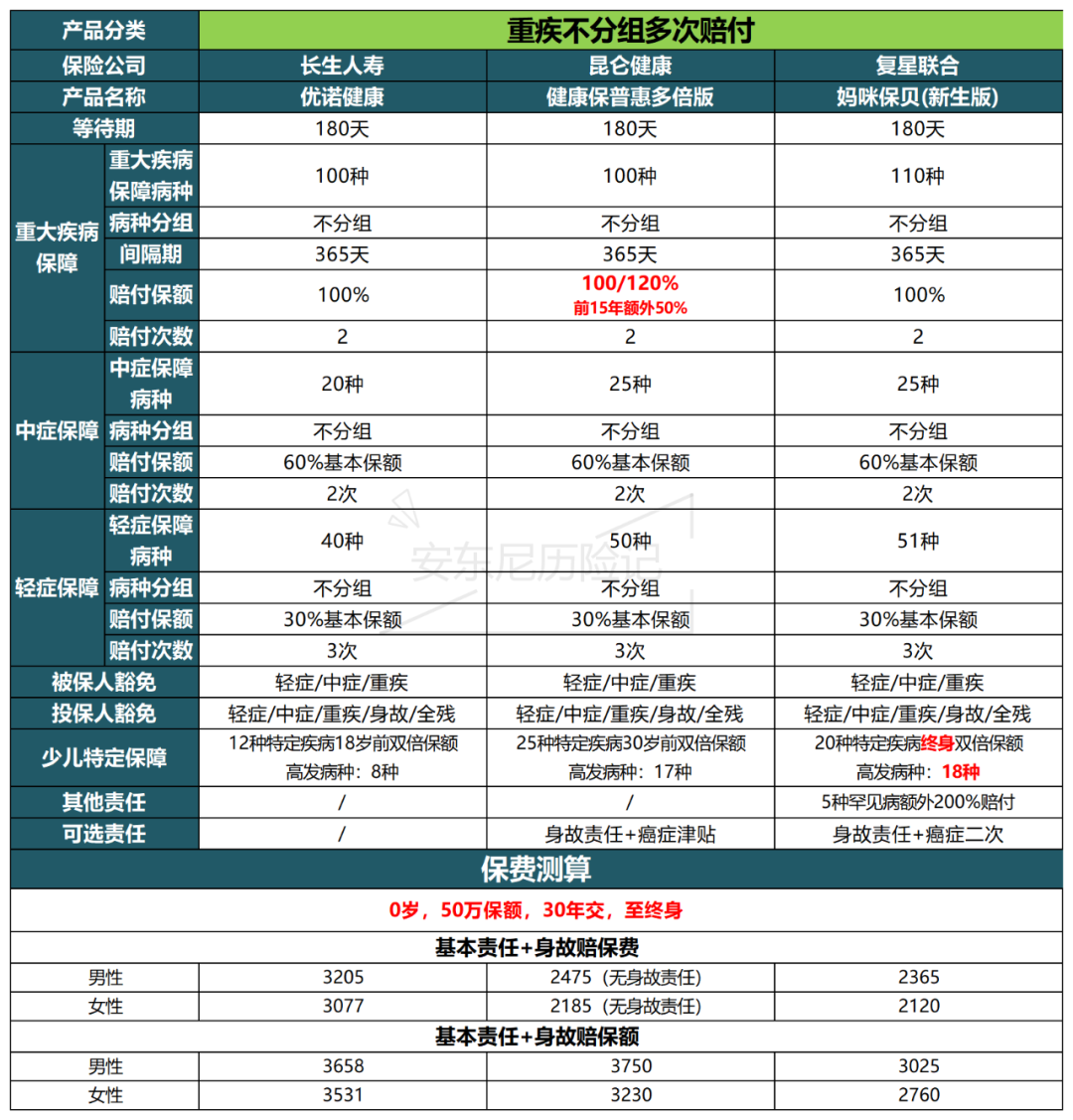 在少儿高发上面较全面的还是复星妈咪保贝新生版,其次是昆仑健康保普惠多倍版。