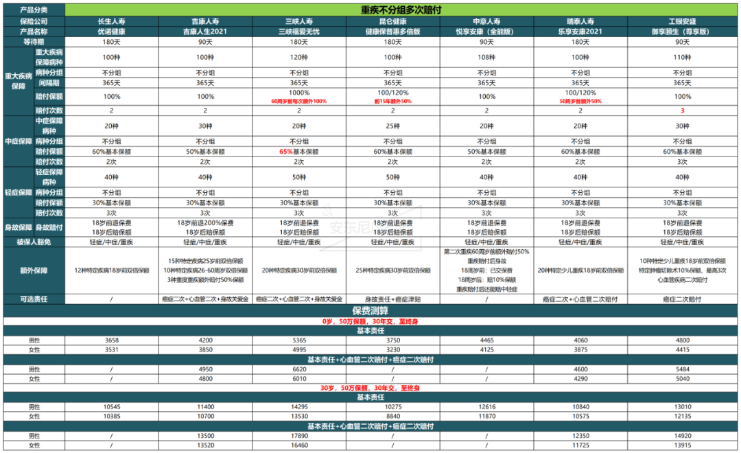长生优诺健康的重疾是不分组赔付2次,轻中症也是常规60%和30%的比例。另外还特意搭上了少儿特定责任,但保障期有点短只到18周岁,其他并没有额外赔付。