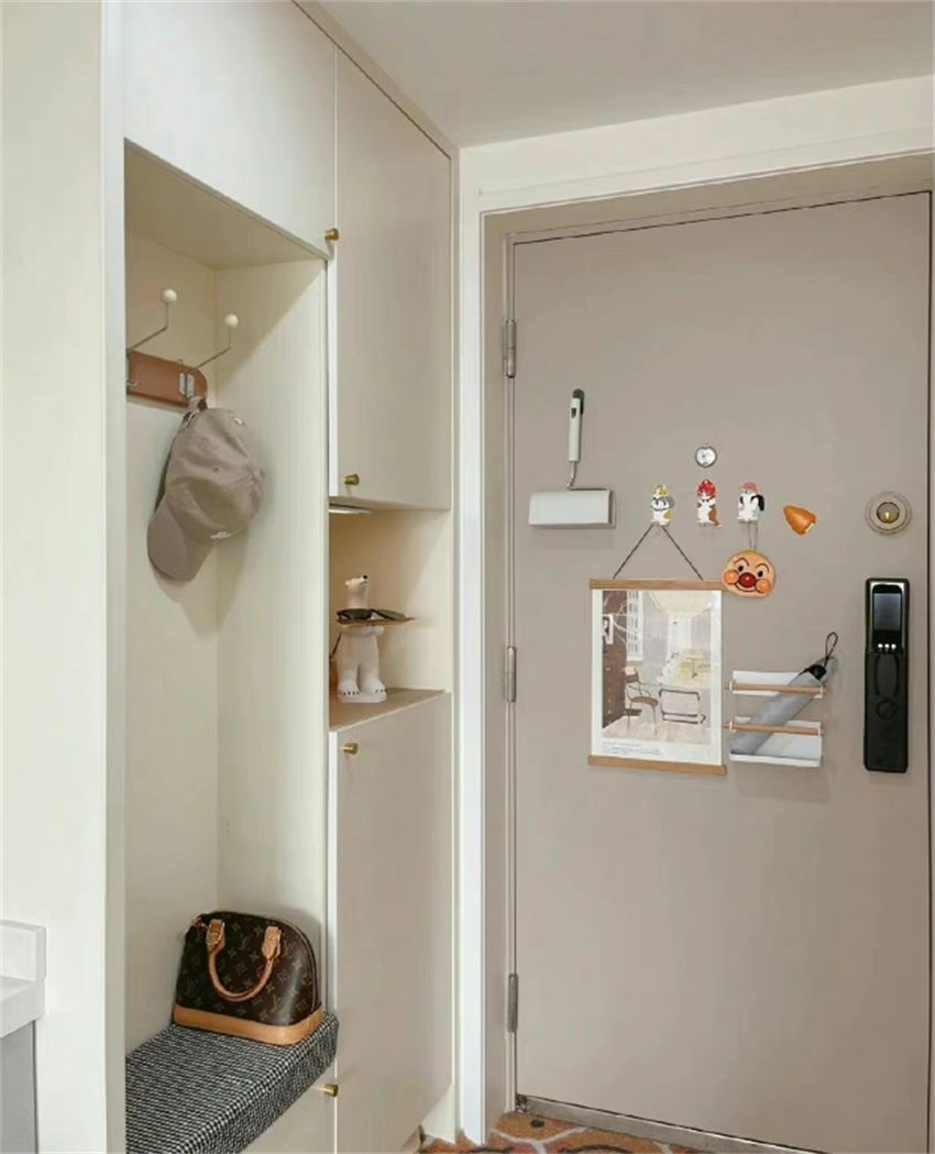 入户一组玄关柜,挂衣区、换鞋区、储物区合理分布,满足使用。