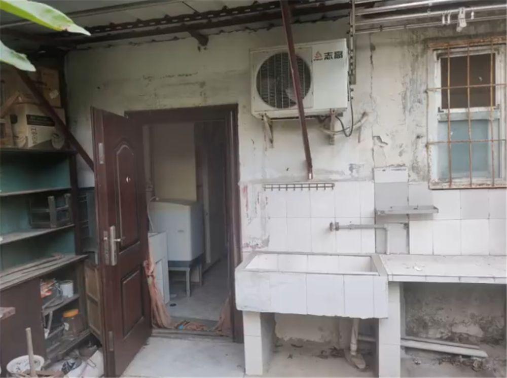 这间老破小带有一个小院,改造前,真的显得太过破败,不仅有很多前屋主留下的垃圾,还有拥挤的置物架、洗手池,空调外机也给人一种突兀的感觉,压缩了院内空间。