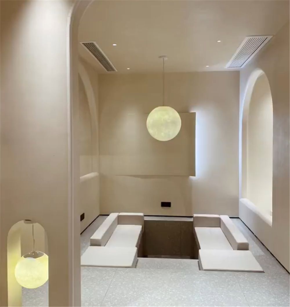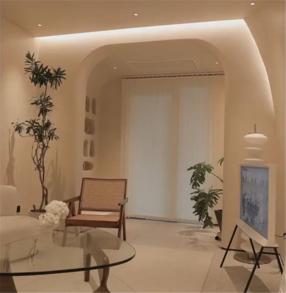 改造后——重点来了!大家从这里就能看到很多圆形和拱形的元素,它们的存在既柔化了空间,又给人一种轻盈灵动的感觉,搭配暖色调照明,别提多温馨了!