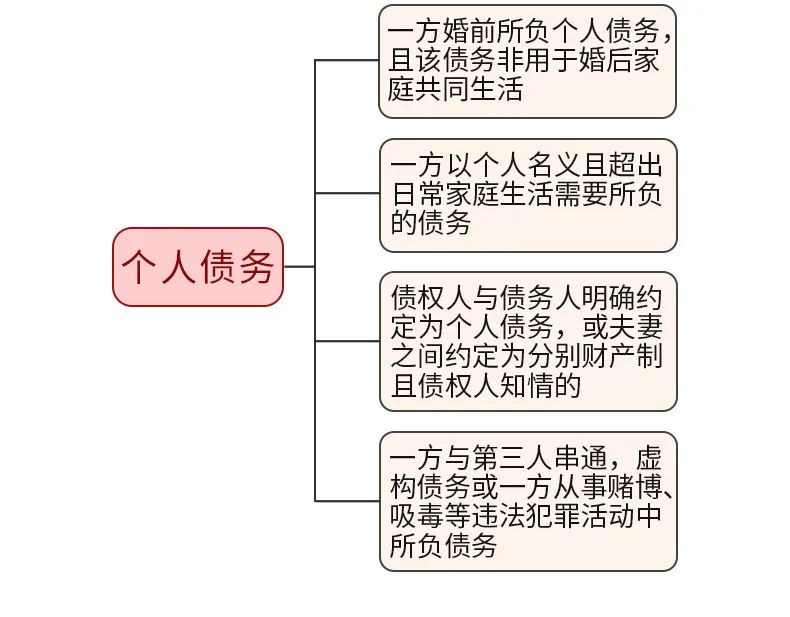 2.夫妻双方约定夫妻财产分别所有,婚姻关系存续期间,夫妻一方以个人名义对外负担的债务,负担债务时债权人知道夫妻关于财产分别所有的约定;