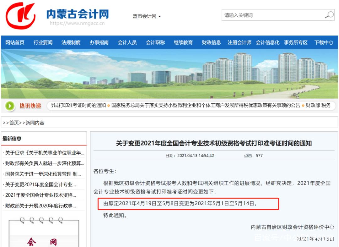 内蒙古会计网发布初级准考证打印延期通知,除此之外,广西、福建更新了准考证打印时间,请大家及时关注所在地准考证打印时间。