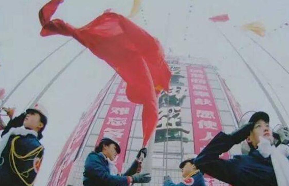 第一件事:在商场门口竖起旗杆,每天早上派“娘子军”组织升旗仪式,还有仪仗队表演,引起无数人围观。