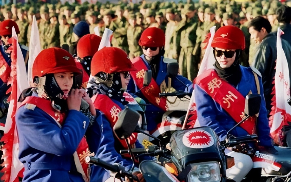 有女子摩托车方队,还有专门的仪仗队等等,她们整齐有序地展示着自己的技能,吸引来了不少市民观看。