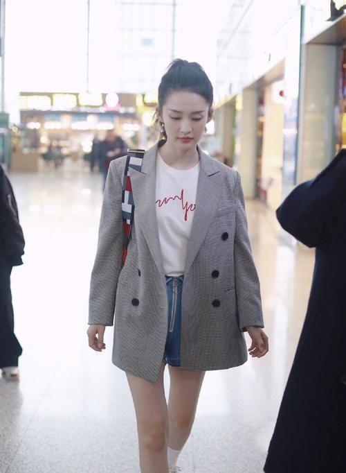 但切记短裤长度不要长于外套,长于外套就有点大圈套小圈了,有点土气,那种若隐若现的最好,又飒又酷有种姐的腿就是长的感觉。