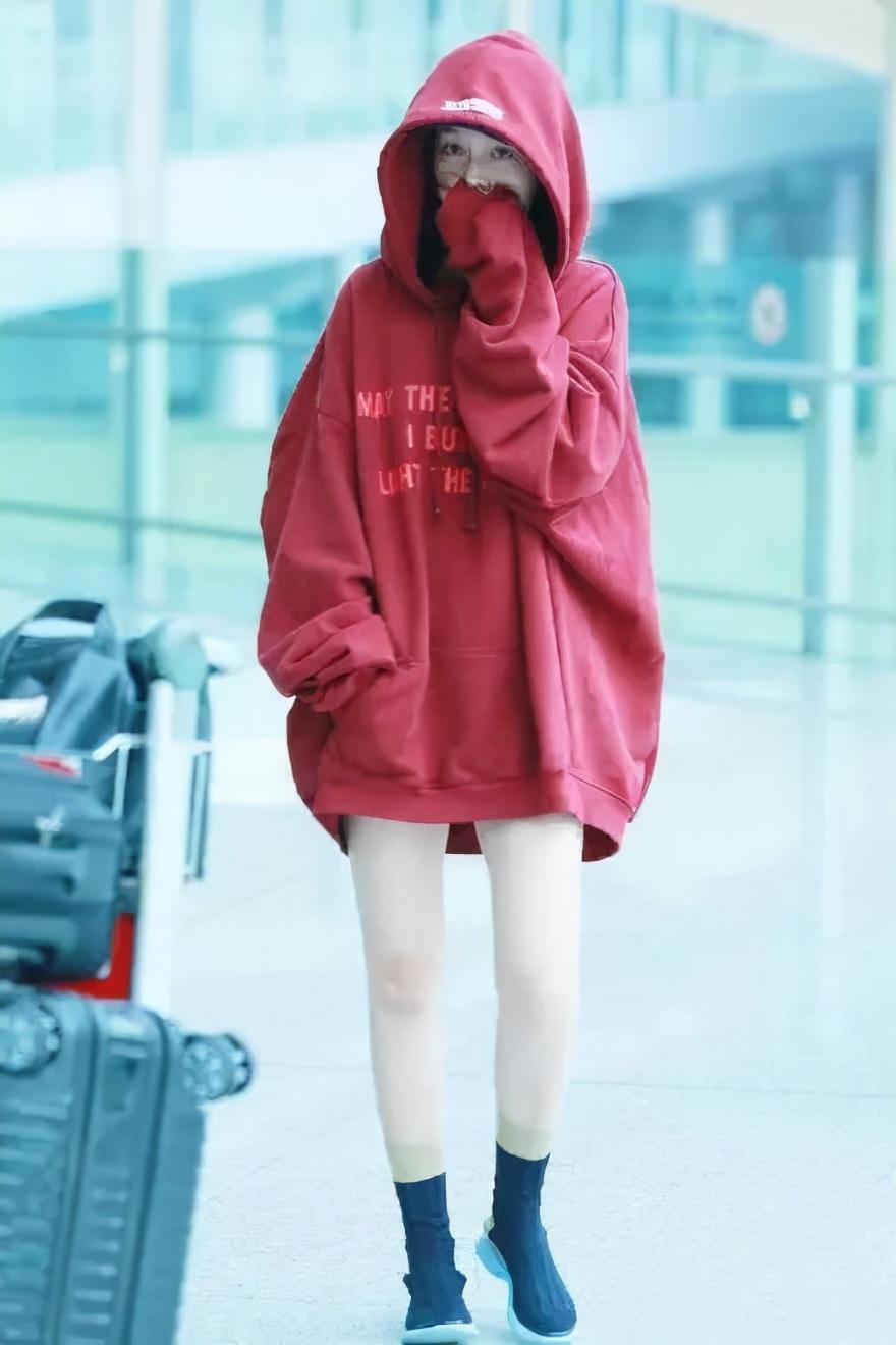 一件宽松的卫衣也是突出的长腿的好单品,但宝贝们可别是大圈套小圈的,卫衣配紧身裤。