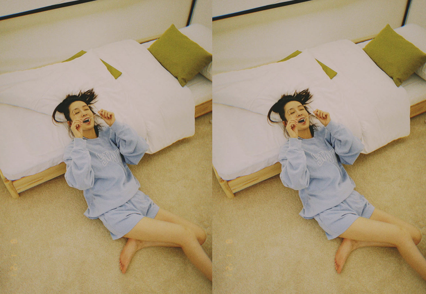 自己上身体感也很慵懒舒服地比较适合居家或者闺蜜温居,虽然看着像没穿裤子,但是自己一定穿件安全裤或者短裤,运动起来也方便。