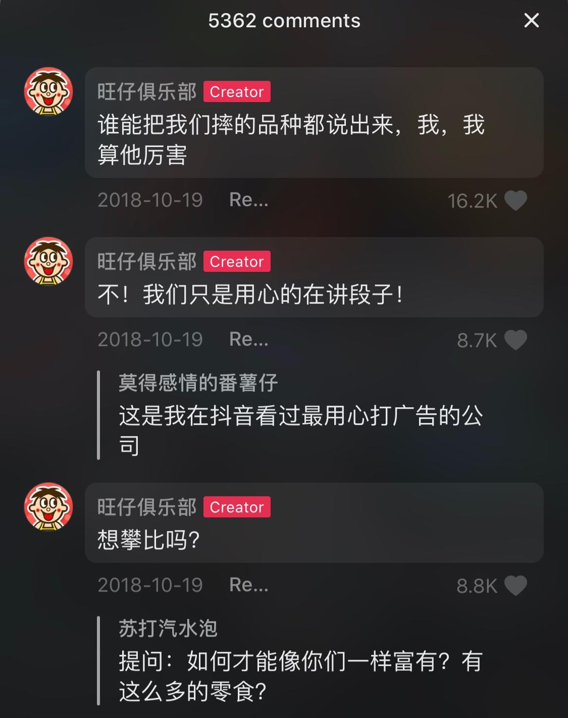 除了制造话题,旺仔还实现了“即时交互”。