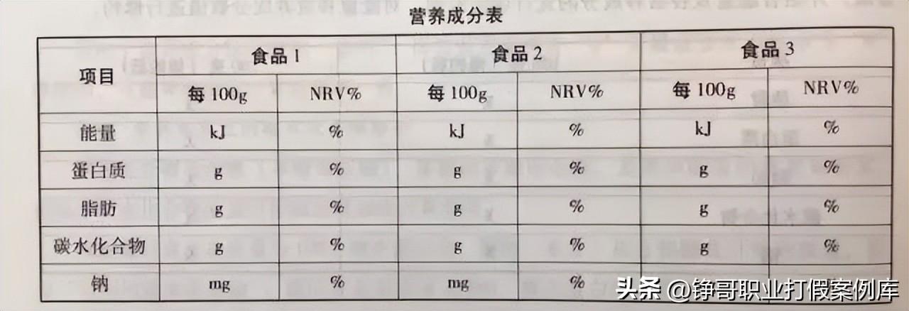 标有食品营养成分名称、含量和占营养素参考值(NRV)百分比的规范性表格。