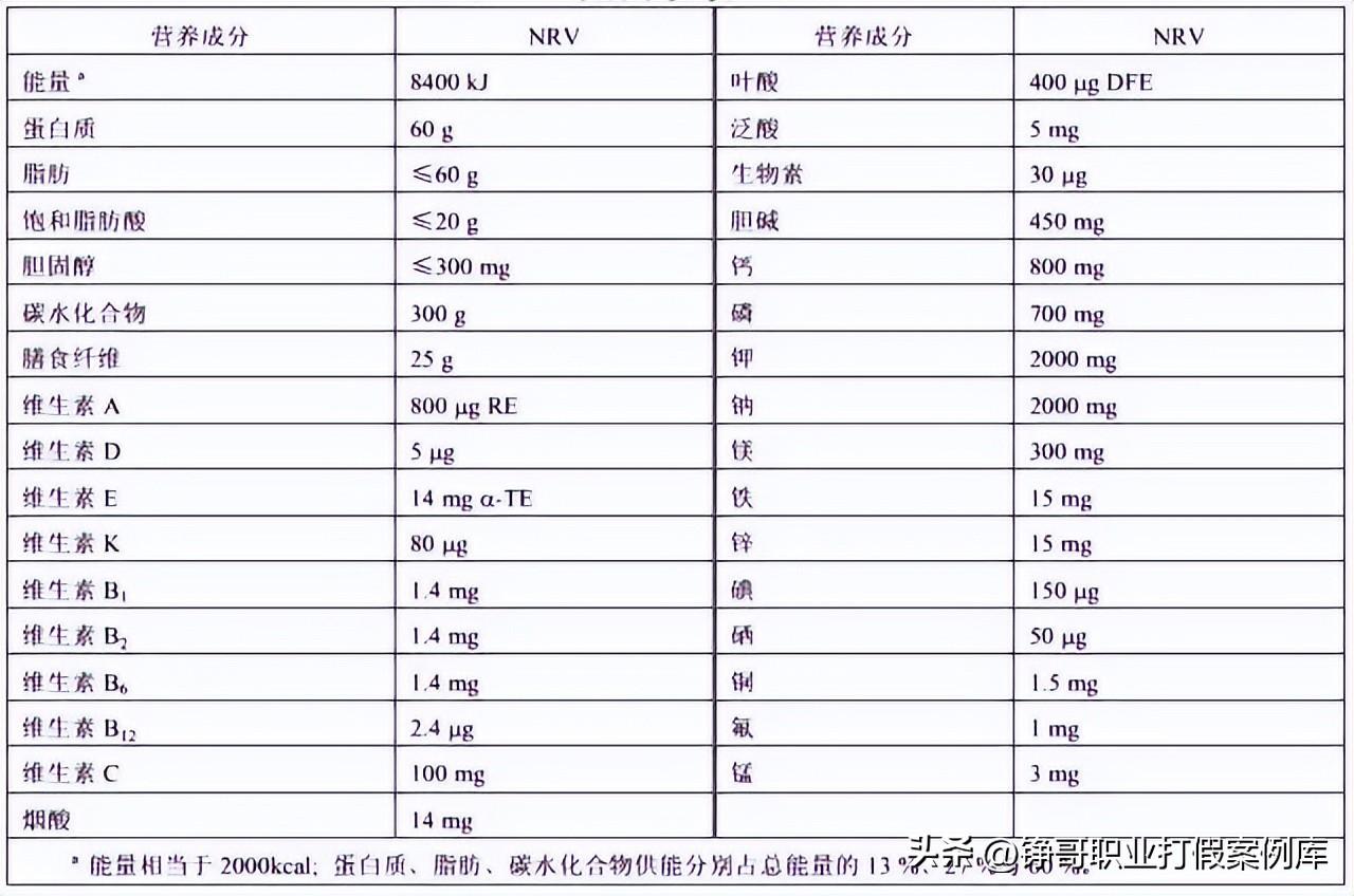 专用于食品营养标签,用于比较食品营养成分含量的参考值。
