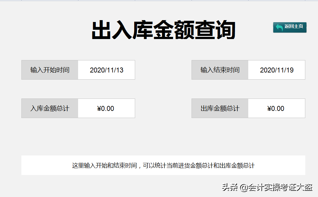 操作说明:出入库金额查询,需要您输入开始和结束时间,即可进行相关查询。