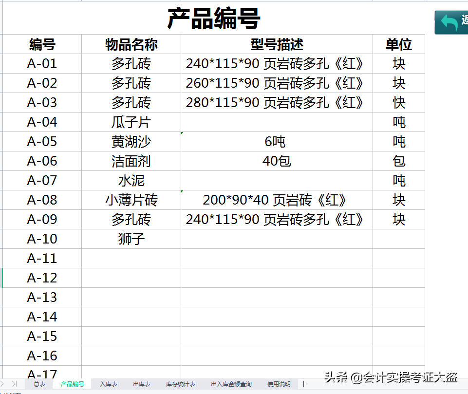 每个产品或者物品有固定产品编号,入库和出库产品编号需要一致。我们的第一步是给产品编号。确定产品名称-型号-单位。