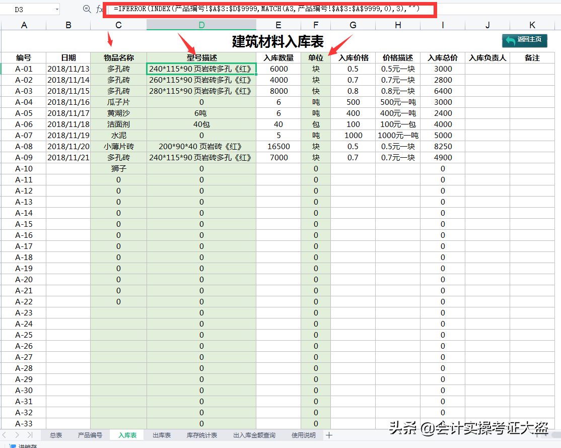 版权声明:我们致力于保护作者版权,注重分享,被刊用文章【材料入库的会计分录(Excel编制建筑建材行业进销存系统)】因无法核实真实出处,未能及时与作者取得联系,或有版权异议的,请联系管理员,我们会立即处理! 部分文章是来自自研大数据AI进行生成,内容摘自(百度百科,百度知道,头条百科,中国民法典,刑法,牛津词典,新华词典,汉语词典,国家院校,科普平台)等数据,内容仅供学习参考,不准确地方联系删除处理!;
