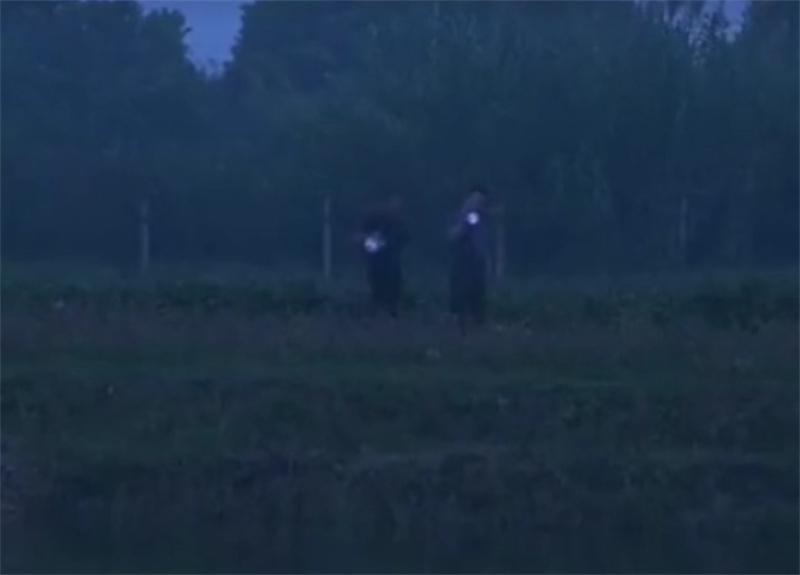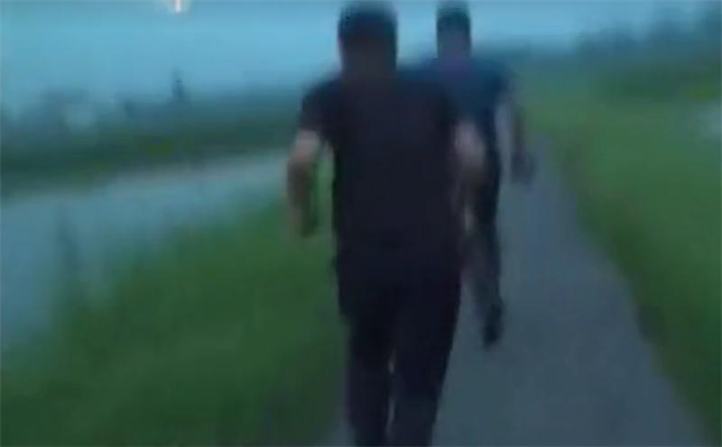 这边吴老汉拦着这个名叫黎晓亮(化名)的偷鱼贼盘问,那边逃出去的两个偷鱼贼心有余悸地回头看来。