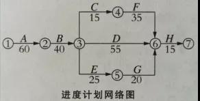 3、针对事件 3 的进度计划网络图,写出其计算工期、关键线路(用工作表示)。分别计算工作 C 与工作 F 的总时差和自由时差(单位:周)。