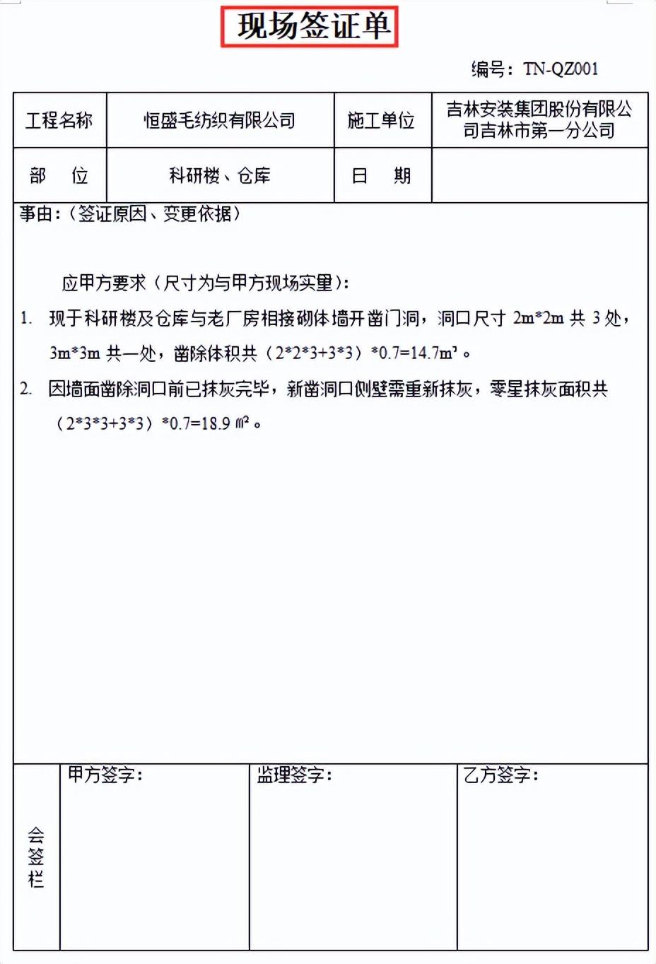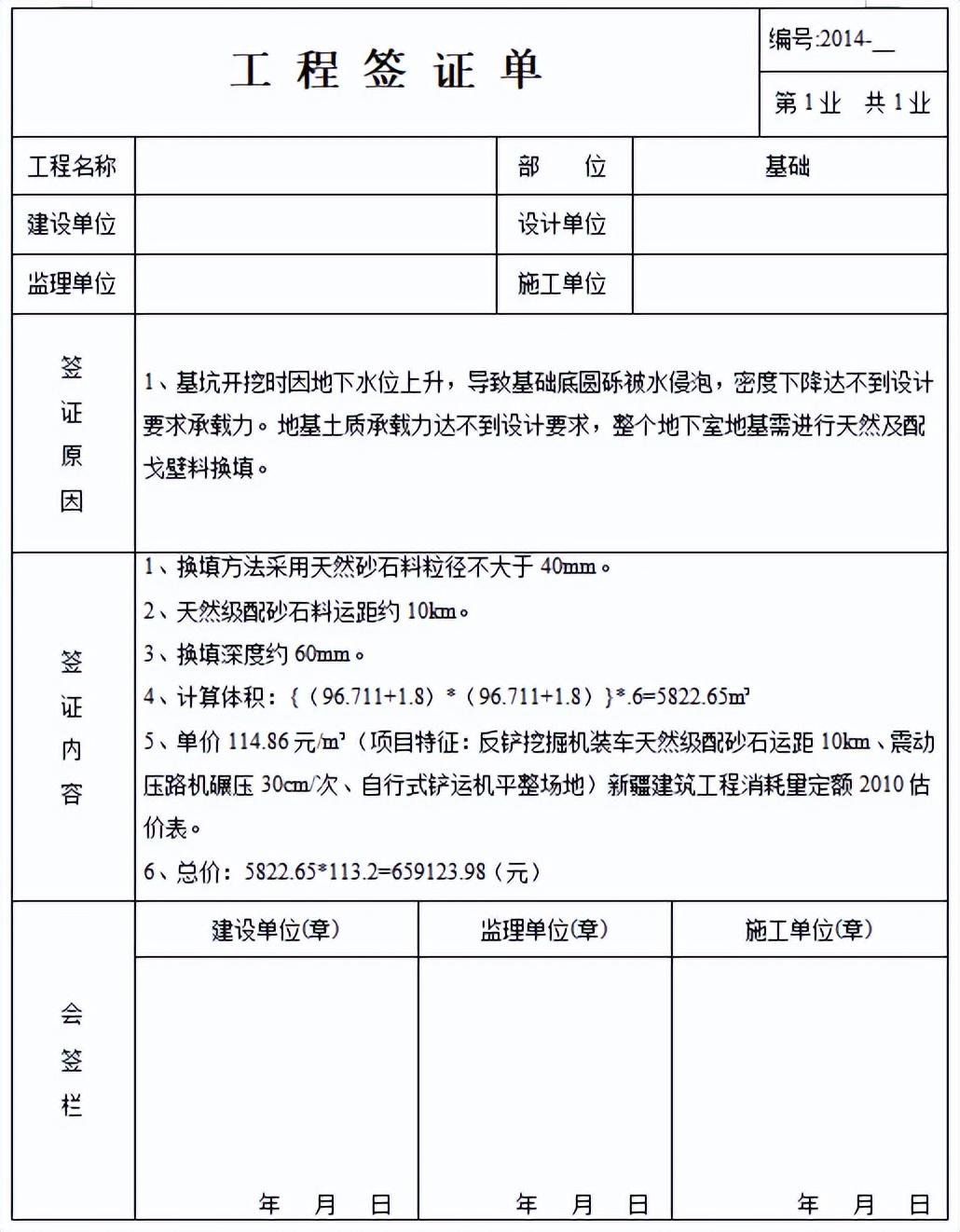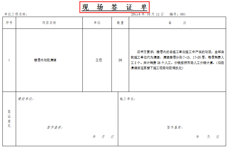 签证单是承发包双方代表就施工过程中涉及合同价款之外的责任事件所作的签认证明,是施工过程中涉及合同价款之外的责任事件所作的签认证明,重要性不言而喻。