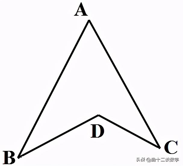 典型的飞镖模型(燕尾模型),利用三角形的外角性质进行证明。