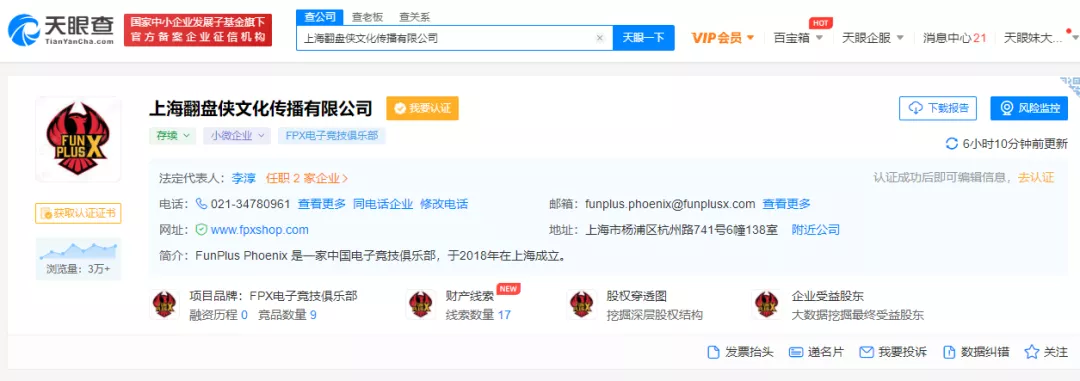 知名电竞战队FPX战队的公司名就叫“翻盘侠”。