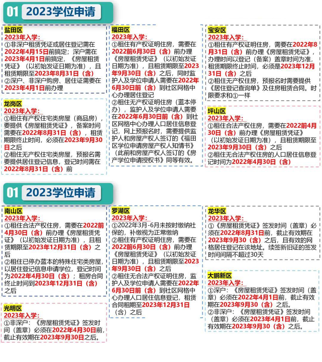 现深圳10区,均已发布2023学位申请住房材料办理的时间节点,