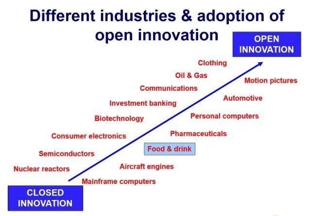 葛兰素史克公司创新总监Paul Isherwood在一场创新研讨会上指出,在15个典型的工业类别中,食品&饮料工业开放式创新程度处于中间水平,与消费电子业相当,但落后于生物技术与制药工业。