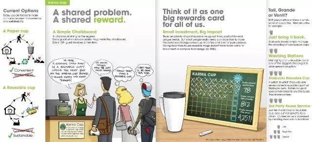 星巴克为了解决店内一次性纸杯的浪费问题,在Jovoto创意平台上推出在线众包大赛,悬赏10000欧元面向全球征集解决方案。2个月内,项目团队收到了430份全新的创意,1500条完善意见和5000条评论。最终的冠军方案“朴实无华”,仅仅建议在星巴克店里悬挂一块小黑板,上面列出所有在店内使用可回收纸杯的顾客名字,第10、20(10的倍数)名的顾客将会得到一杯免费咖啡。