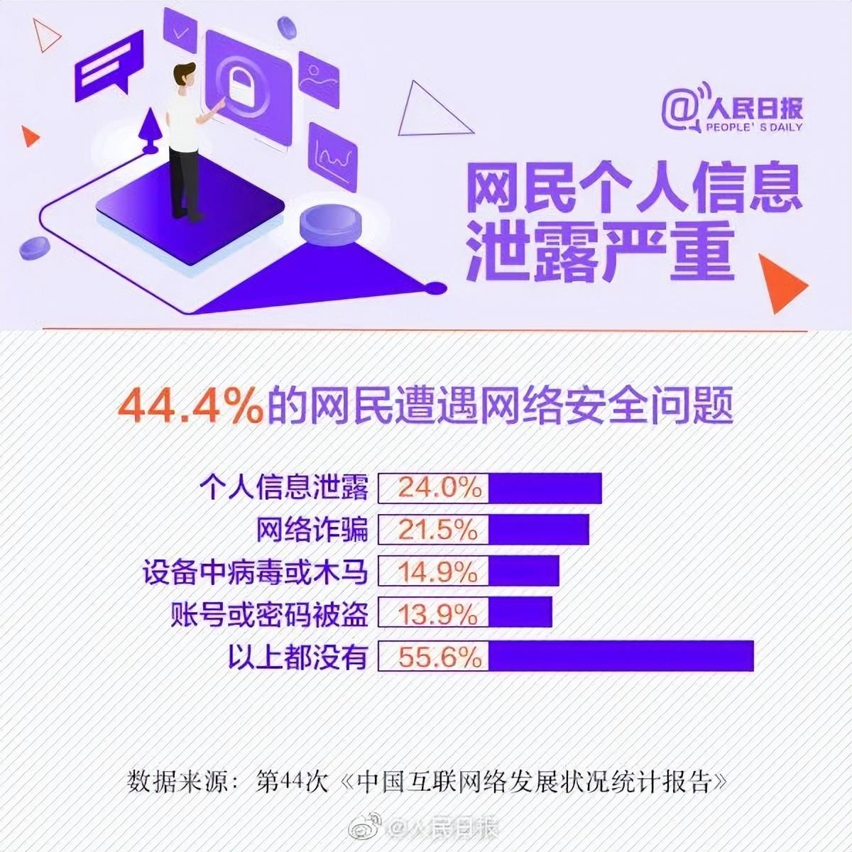 44.4%的网民遭遇网络安全问题