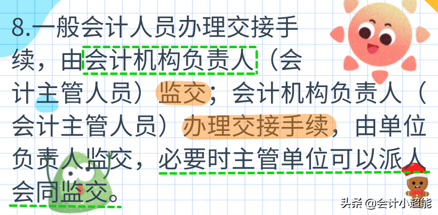 7.单位领导人的直系亲属不得担任本单位的会计机构负责人、会计主管人员。会计机构负责人、会计主管人员的直系亲属不得在本单位会计机构中担任出纳工作。