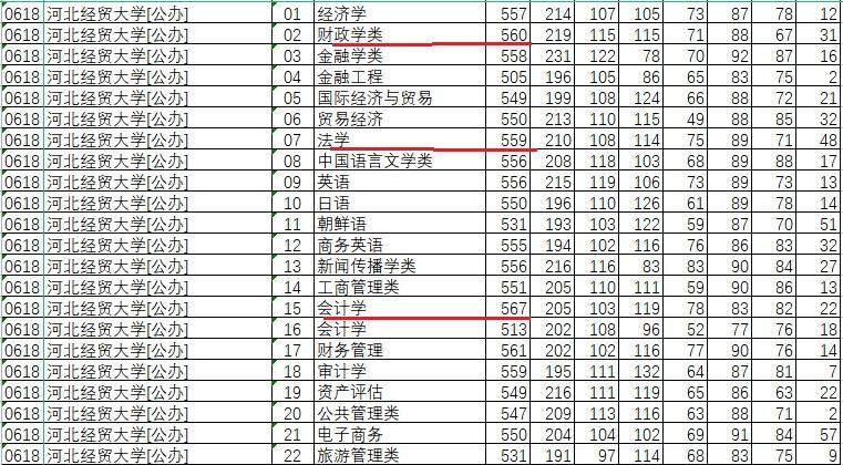 上面的河北经贸大学,会计也是投档线最高,是567分。