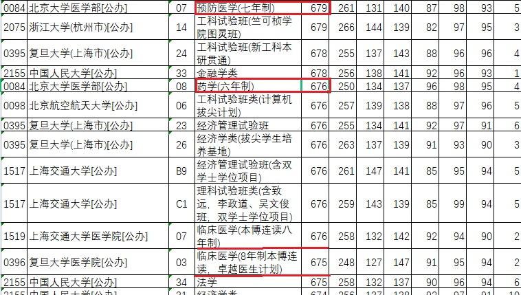 北京大学的预防医学是679分,药学是676分,这个成绩可以在复旦和上交大读8年制的临床医学。