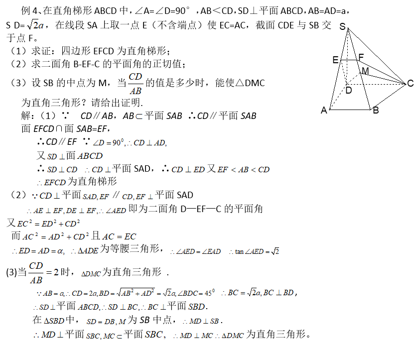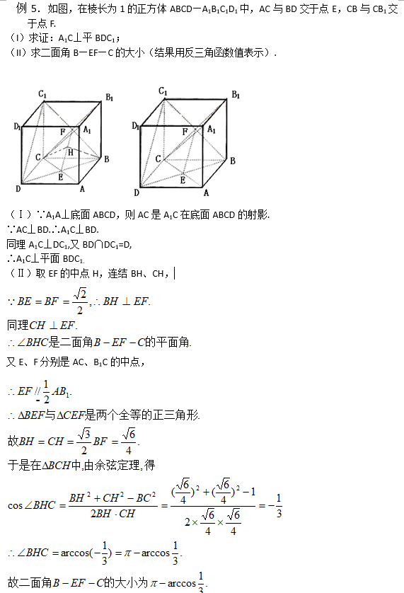 说明:作出公垂线段和二面角的平面角是正确解题的前提, 当然, 准确地作出应当有严格的逻辑推理作为基石。